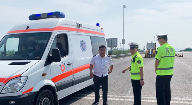 送病人前往醫院的救護車上高速時,院前救助保障機制,保持信息溝通,高速交警支隊開辟“綠色通道”護救護車順暢通行,為搶救傷員贏得寶貴時間。一路上,燈閃爍鳴笛開道,120救護車緊隨其后。最大限度為重病患者縮短路面上的時間,為這位重病患者開啟了“生命通道”,確保病人得到及時、有效救治。