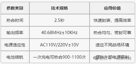 野戰醫院的救護環境,每一分每一秒都關乎生命。密封醫療包裝的精準手熱合機是關鍵設備。精準、高效、穩定的性能戰傷救治生命保障線。熱合機的工作原理是它是利用高頻電場原理塑料熔接,巧妙的溫度控制設計,增加了機體溫度自動監控和反饋調節機制;通過內循環進風散熱工業設計及相關散熱裝置,可連續熱合>400次,保證熱合機高頻率使用時溫度的可控性,提高工作效率,保障熱合效果,延長設備使用壽命。使塑料內部分子發生極化并高速運動產生熱量,從而達到熔接效果。設備工作時,PVC材料達到熔融狀態,同時在熱合電極的壓力下完成密封,避免液體滲漏和細菌污染。